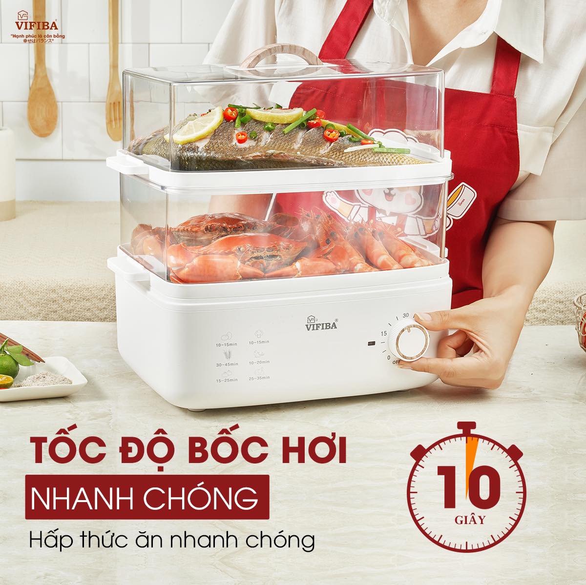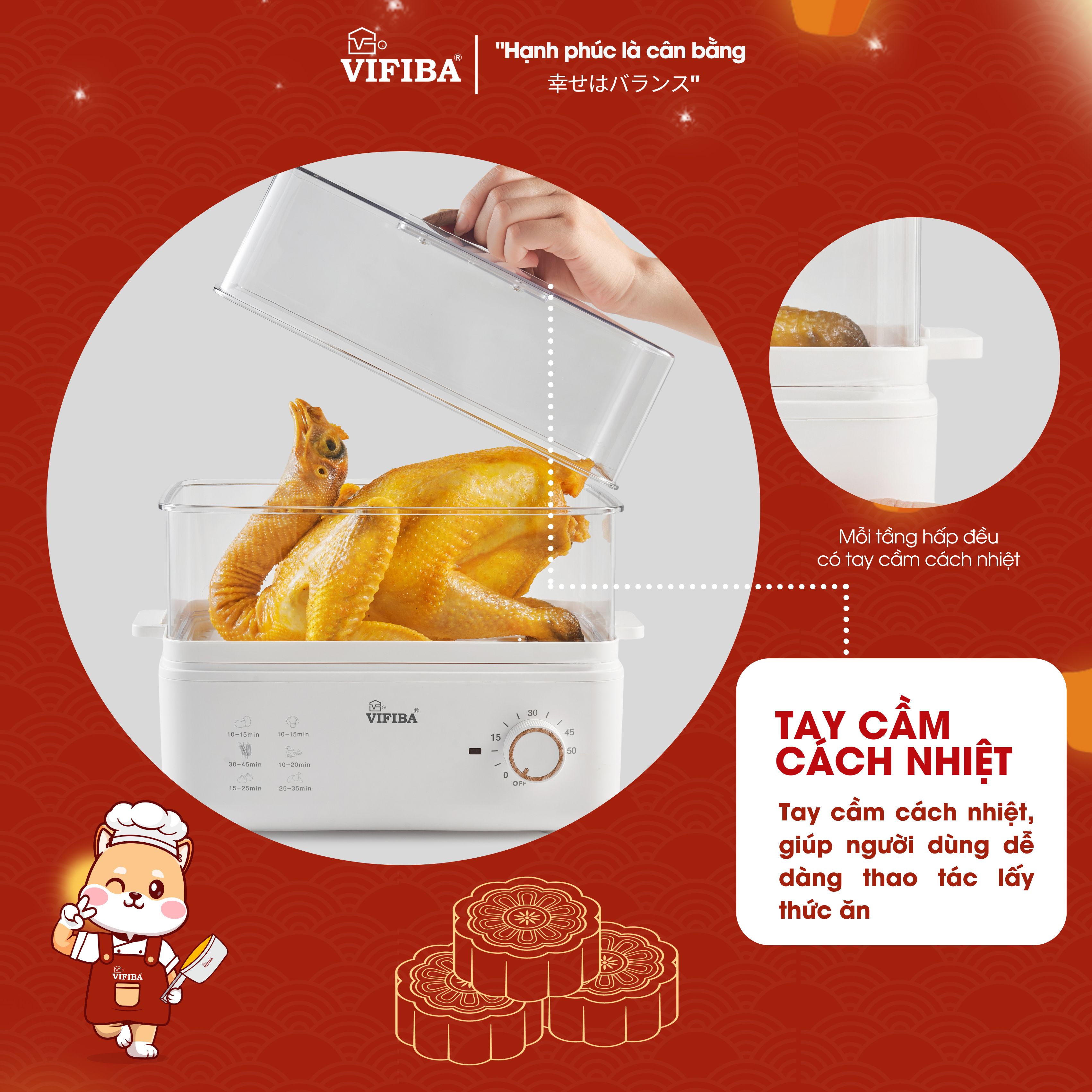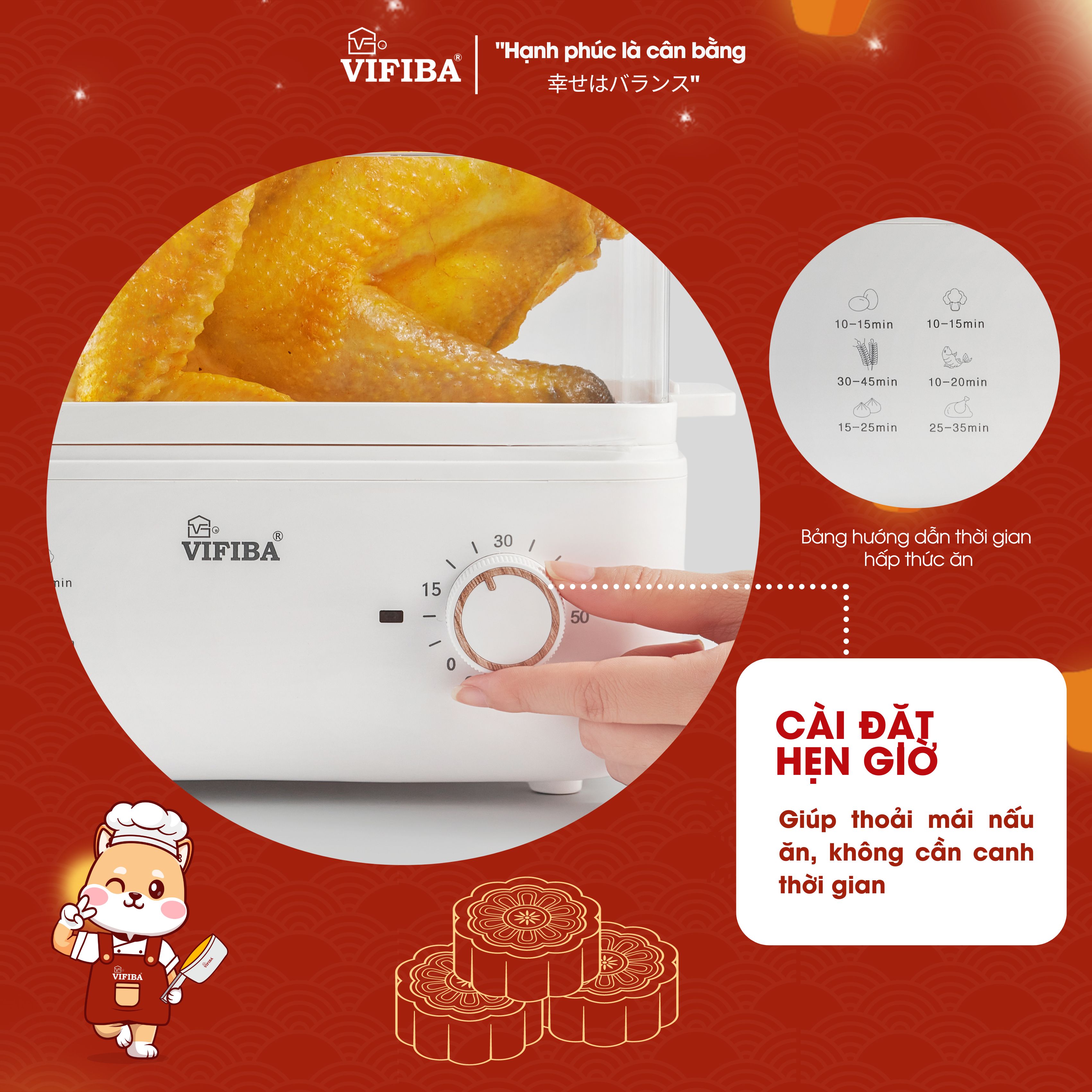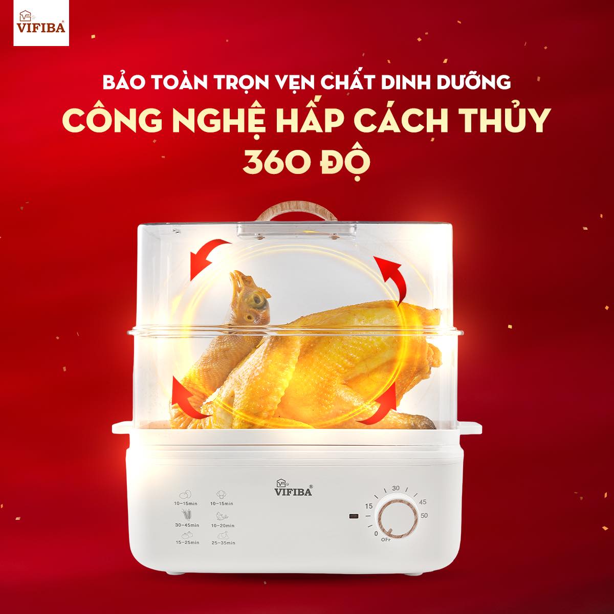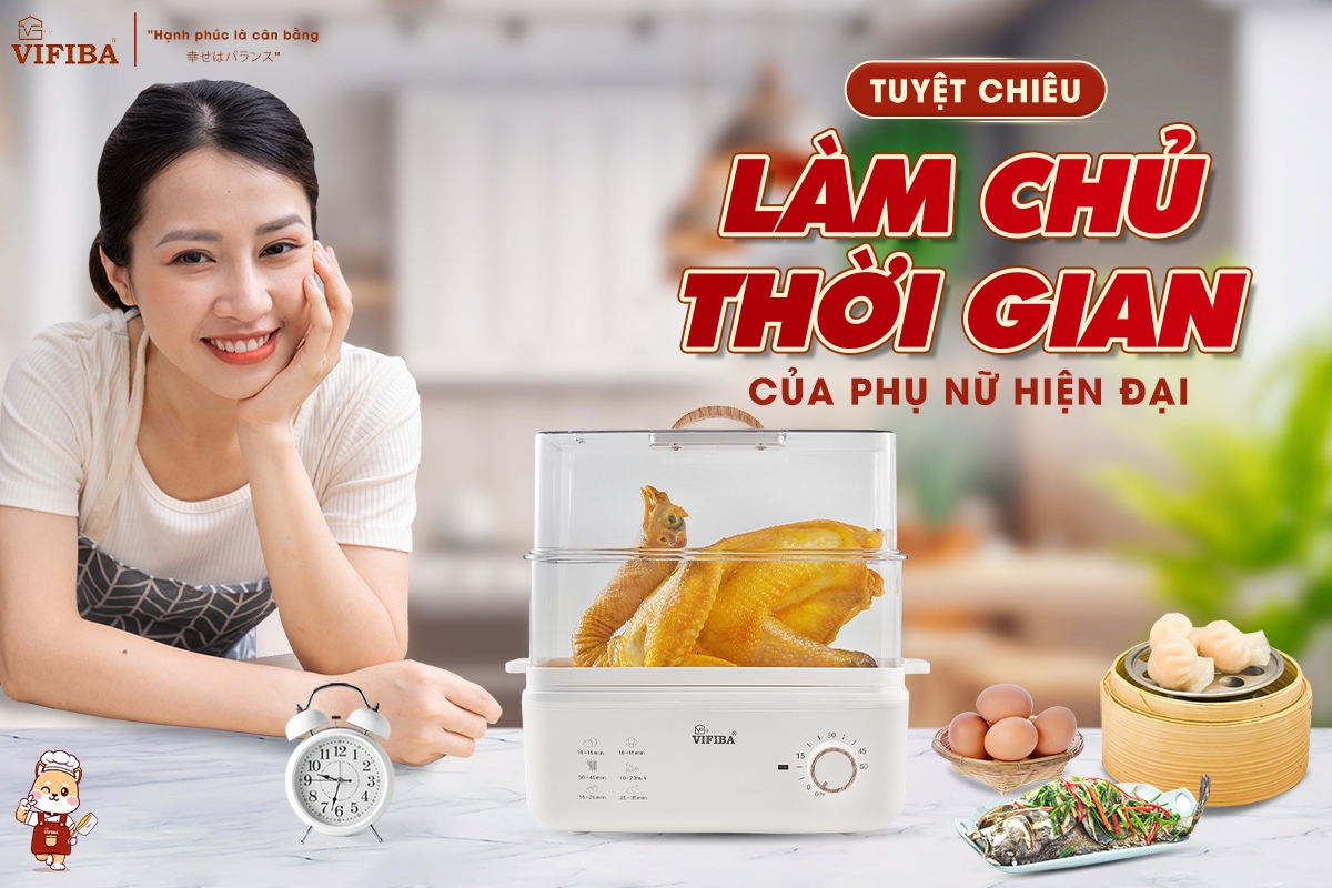 - Núm vặn cơ retro tiện lợi - Có hướng dẫn về thời gian cho các món trực tiếp trên nồi hấp vifiba cực kì tiện lợi