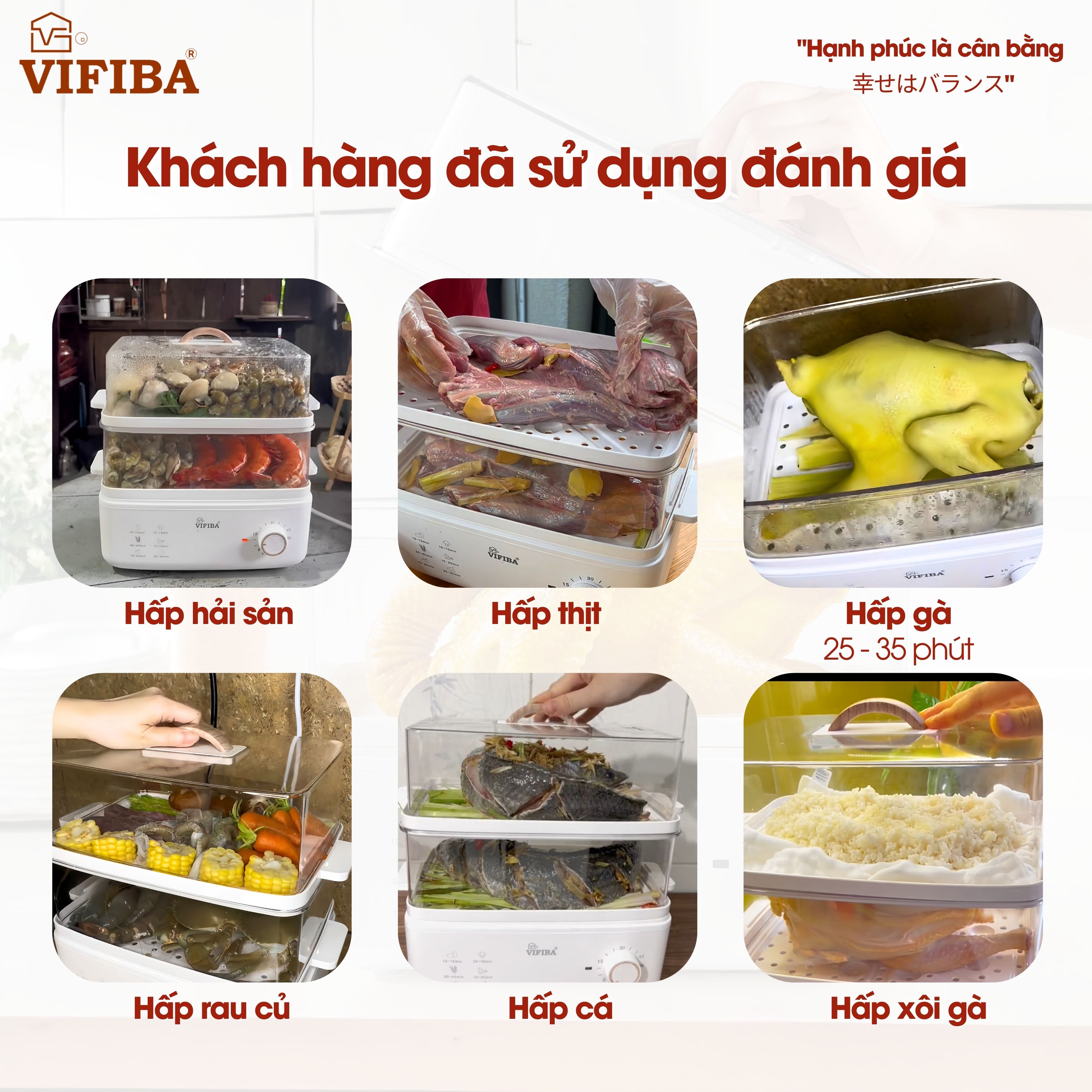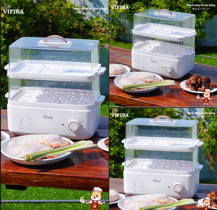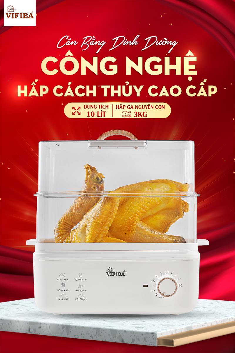- Nồi hấp Vifiba hấp mọi món, hấp gà nguyên con 2-3kg thoải mái, hấp rau củ, hấp xôi,...