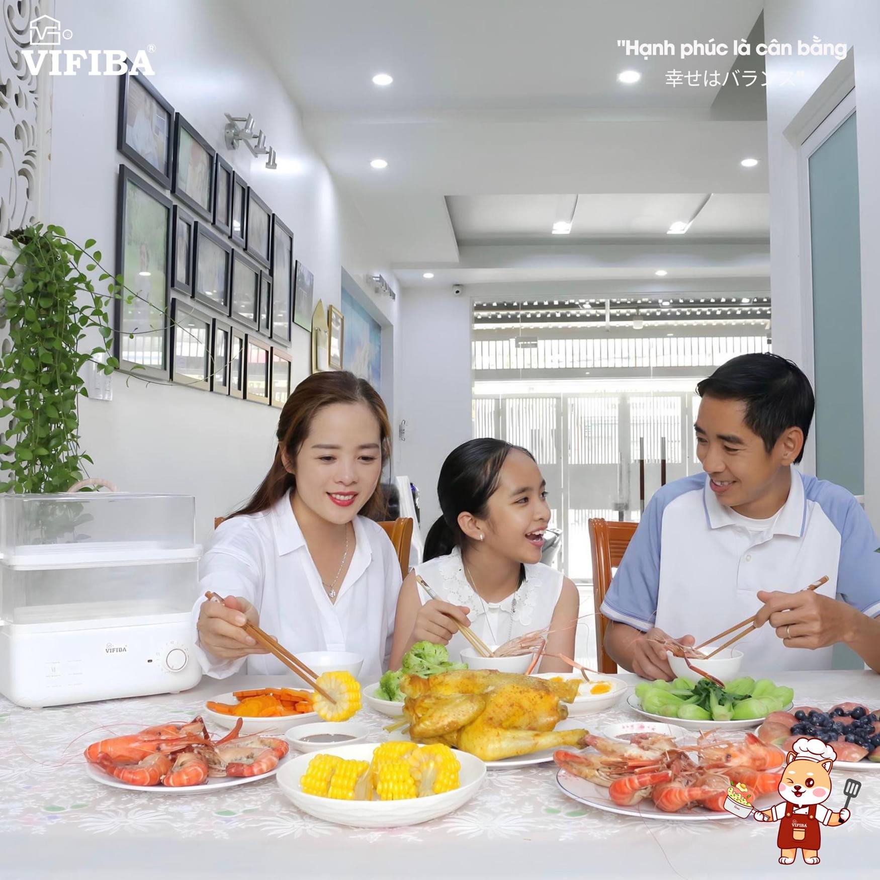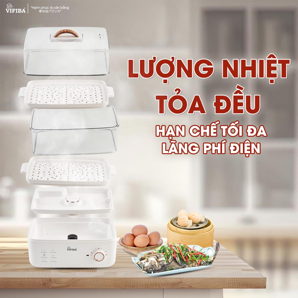 - Nồi hấp điện vifiba thiết kế màu trắng thang lịch, kiểu dáng sang trọng
