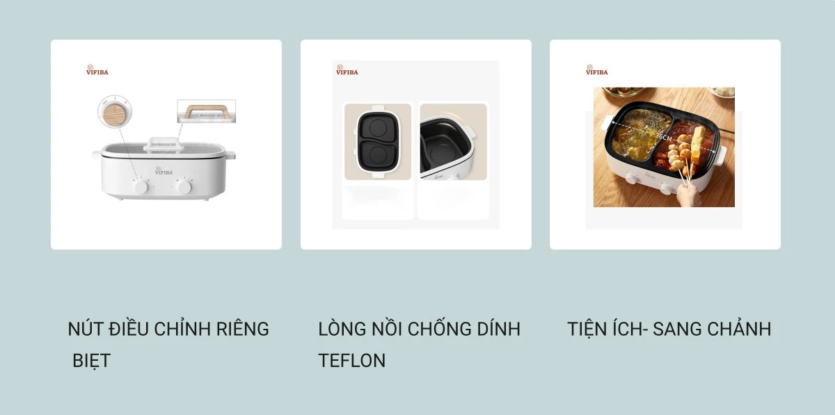 Nồi Lẩu 2 Ngăn VIFIBA 5.5L - Chống Dính Teflon, Công Suất 1600W, Điều Chỉnh Nhiệt Độ Riêng, An Toàn, Làm Nóng Nhanh