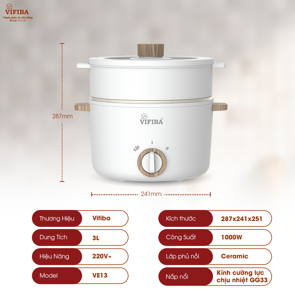Nồi Lẩu Điện Sora Vifiba - Kèm khay hấp