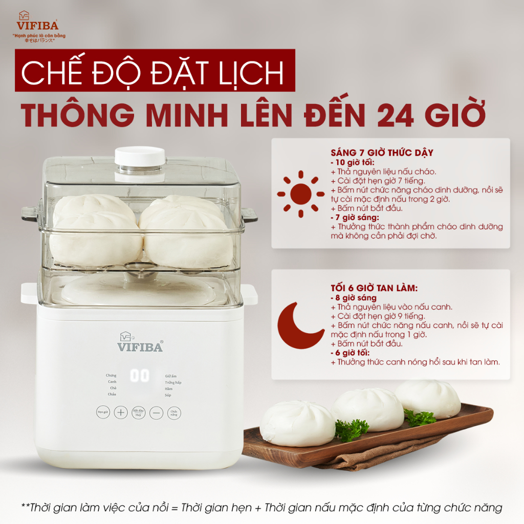 - Đặt lịch trước: Có khả năng đặt thời gian nấu trước đối với mỗi chức năng, giúp bạn tự do quản lý thời gian nấu ăn.
